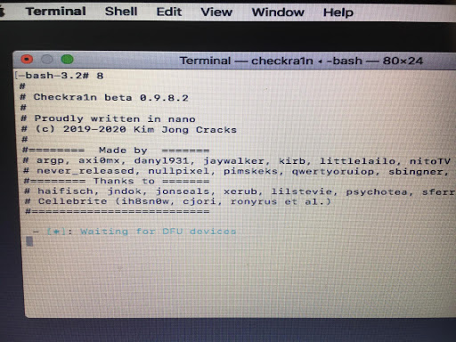 bổ sung thêm lệnh để anh dùng: Gõ lệnh trong Terminal - Chế độ thông thường bảng checkra1n màu trắng nhập 09 sẽ ra Checkra1n 0.9 nhập 091 sẽ ra Checkra1n 0.9.1 nhập 092 sẽ ra Checkra1n 0.9.2 nhập 093 sẽ ra Checkra1n 0.9.3 nhập 0932 sẽ ra Checkra1n 0.9.3.2 nhập 095 sẽ ra Checkra1n 0.9.5 nhập 096 sẽ ra Checkra1n 0.9.6 nhập 097 sẽ ra Checkra1n 0.9.7 nhập 098 sẽ ra Checkra1n 0.9.8 nhập 0981 sẽ ra Checkra1n 0.9.8.1 nhập 0982 sẽ ra Checkra1n 0.9.8.2 nhập 099 sẽ ra Checkra1n 0.9.9 nhập 100 sẽ ra Checkra1n 0.10.0 nhập 101 sẽ ra Checkra1n 0.10.1 nhập 102 sẽ ra Checkra1n 0.10.2 nhập 110 sẽ ra Checkra1n 0.11.0 nhập 120 sẽ ra Checkra1n 0.12.0 nhập 121 sẽ ra Checkra1n 0.12.1 nhập 122 sẽ ra Checkra1n 0.12.2 nhập fix20 sẽ ra minaUSB V1.1 ( Dùng để fix lỗi -20 khi JailBreak ) nhập purple sẽ ra purple pro - Chế độ cli ( chế độ chờ DFU - tất cả các bản checkra1n đều có chế độ này ) Thêm -cli ở sau: Ví Dụ: 097-cli , 122-cli , ...