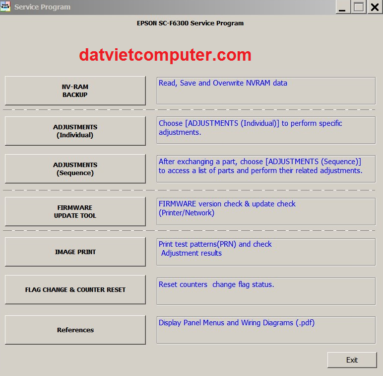 Service program for Epson SureColor SC-F6300 Series Reset Plotter